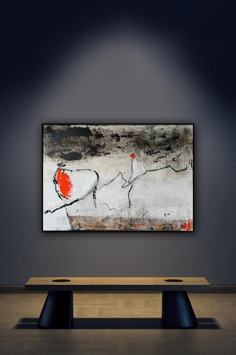 63x 63 (inkl. Rahmen); Achtung ist nur eine Studie, aber zu schön, um im Atelier zu bleiben,